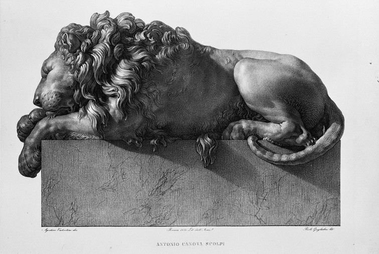 Antonio Canova udførte gravmonumentet for Pave Clemens XIII i 1792. Løven hviler ved foden af monumentet, der er opført i Skt. Peterskirken i Rom. Løven kan have inspireret Bertel Thorvaldsen til at udforme sin løve til et monument i Lucern i Schweiz .